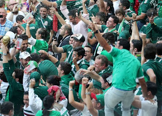 | Fans celebrate as Mexico pull of a stunning result against the reigning champions (Image from the mirror) |